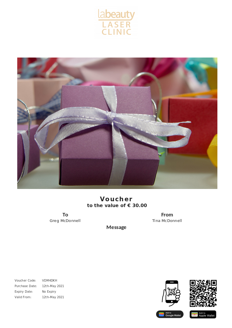 LA Beauty Clinic allows you to purchase instantly printable gift vouchers, special offers and tickets using the Voucher Connect platform.